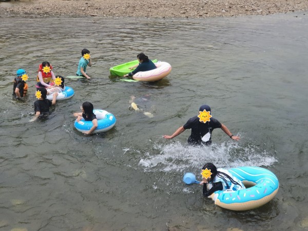 성주 산그늘펜션 앞 하천에서 물놀이로 즐거운 시간을 가짐