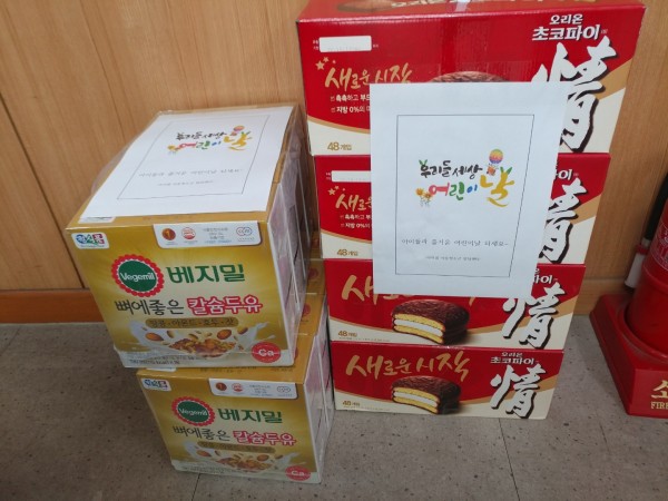 아이샘아동청소년상담센터에서 어린이날을 맞아 간식을 후원해 주셨습니다.