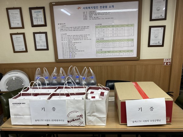 플렉션TV에서 아동들을 위해 간식을 후원해 주셨습니다.