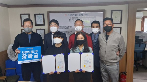강북로타리클럽 추천으로 손*영, 박*난 아동에게 장학금 전달을 하였습니다.