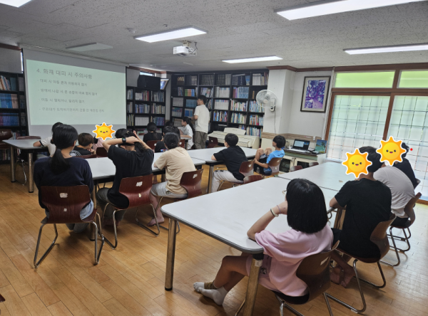 아동들이 안전 교육으로 화재 대비 교육을 받았습니다.