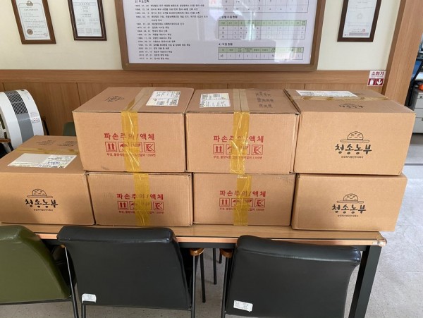 청송농부 사장님께서 아동들을 위해 과일쥬스를 후원해 주셨습니다.