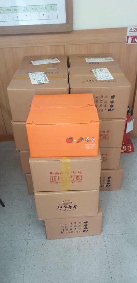 청송농부에서 아동들을 위해 과일쥬스를 후원해 주셨습니다.