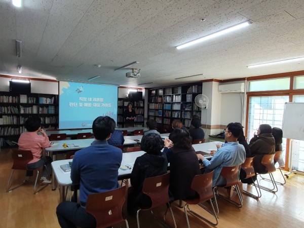 종사자 의무교육인 장애인식개선교육과 직장내괴롭힘예방교육을 전문강사를 모시고 받았습니다.