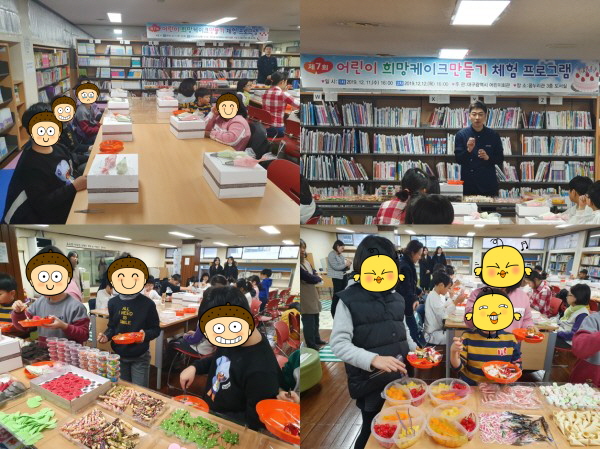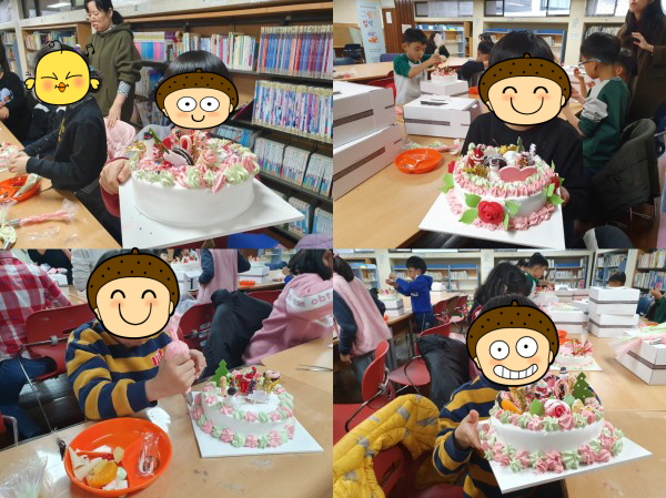 어린이회관 주최 어린이희망케이크만들기 행사에서 맛있는 케이크를 만들었습니다.