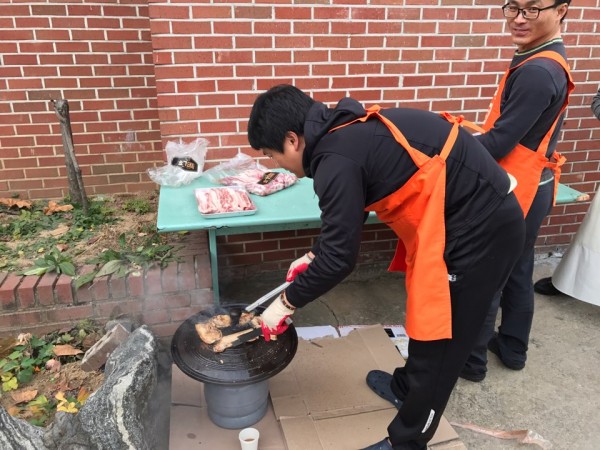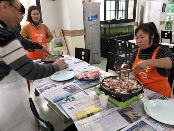 매월 첫째주 토요일 저녁봉사를 해 주시는 맛,길에서 삽겹살 파티를 해 주셨습니다.