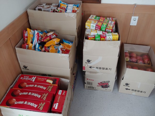 교직원공제회에서 후원방문 하셔서 후원금 전달과 간식을 제공해 주셨습니다.