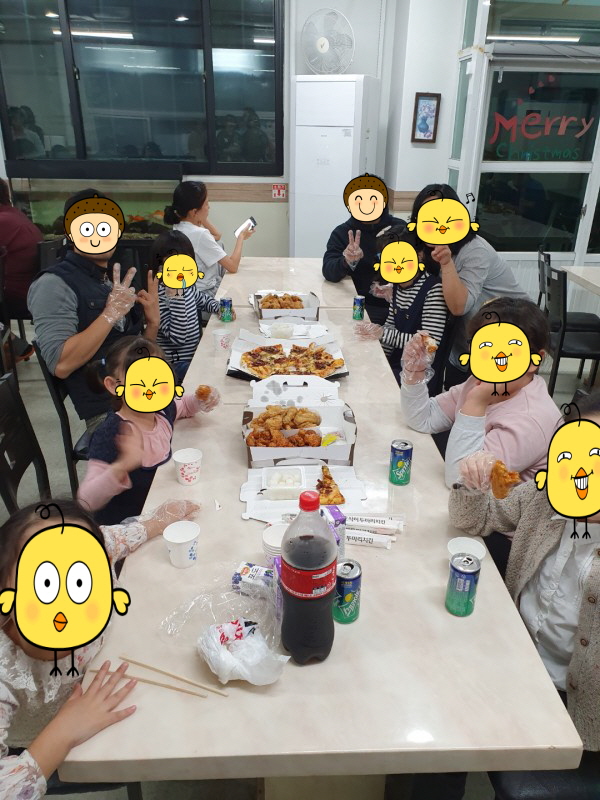 호연회에서 후원방문 하셔서 치킨, 피자 등 간식을 나누며 친교의 시간을 가졌습니다.